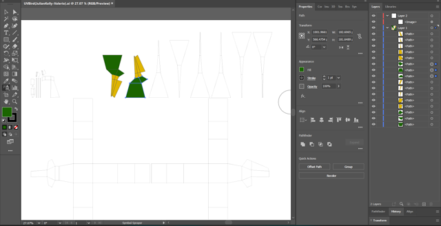 Fourth, I went to Illustrator and colored in the boxes to fill the bird with the specific texture.
